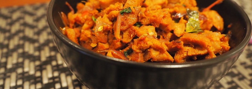 Yummy and delicious,spicy soya stir fry is ready. In Kerala this style of cooking is called Ularthiyathu and usually beef is cooked in this tasty way. This mock meat version of soya will come close to the beef stir fry. Enjoy this healthier and protien rich dish at your home today.